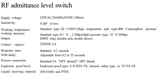 Model:RF admittance level switch